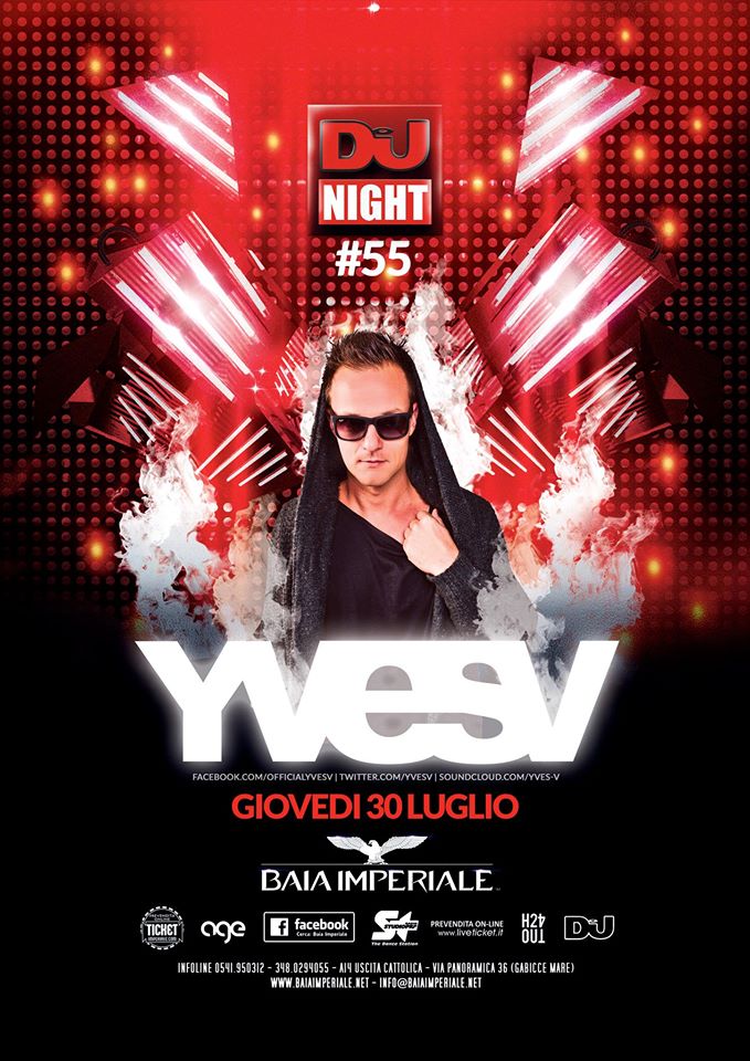 Giovedì 30 luglio 2015 alla Baia Imperiale di Gabicce chitarra la notte numero 55 targata Dj Mag Night. Protagonista di questa folle nottata sarà il dj resident del Tomorrowland: Yves V. Apre la serata Maurizio Gubellini e chiude Execute.